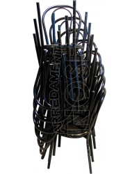 Sedia sovrapponibile con telaio interamente metallico in tubo tondo. Sedile ad incastro in plastica polipropilene motivo fintapaglia.