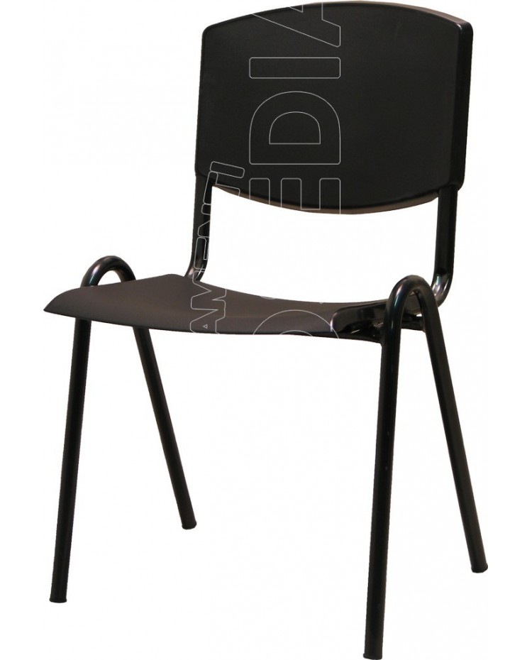 Sedia sovrapponibile con telaio interamente metallico in tubo tondo 25mm. Sedile e spalliera in due elementi separati in plastica polipropilene.
