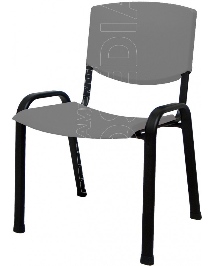 Sedia sovrapponibile con telaio interamente metallico in tubo ovale 40x20x1,5 mm. Sedile e spalliera in due elementi separati in plastica polipropilene.