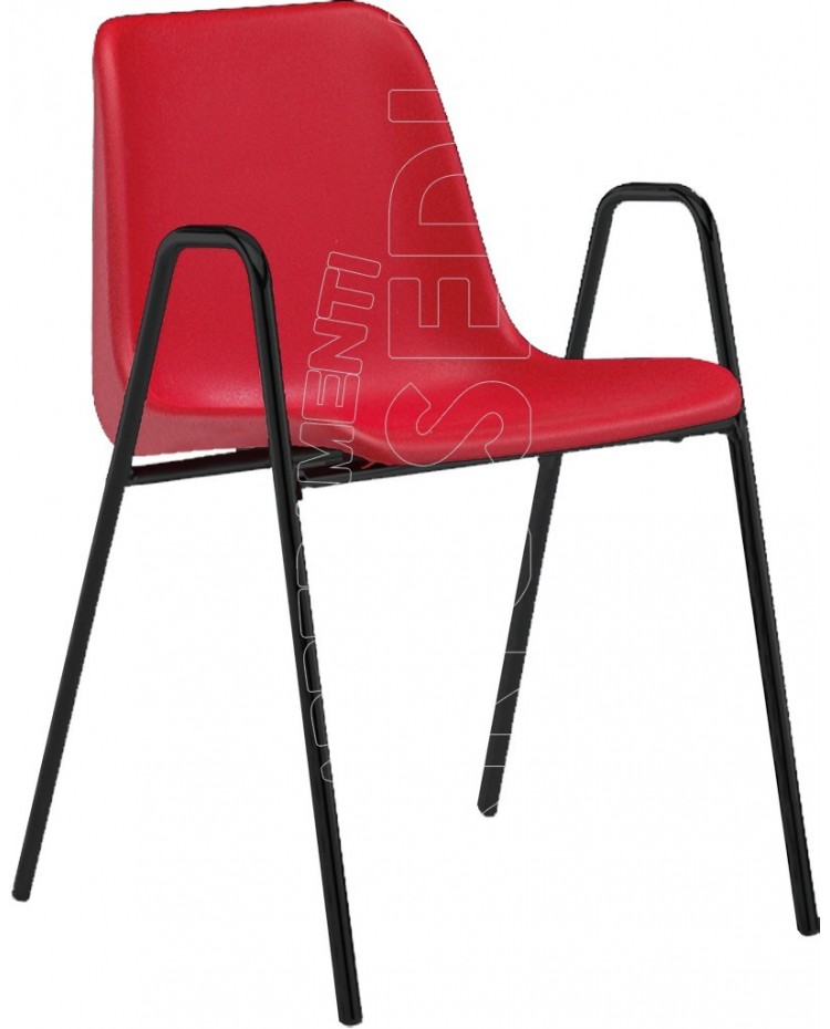 Poltroncina sovrapponibile con telaio interamente metallico in tubo tondo Diam. 18mm. Scocca in un unico pezzo in plastica polipropilene.